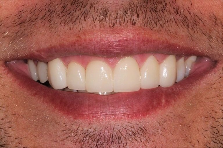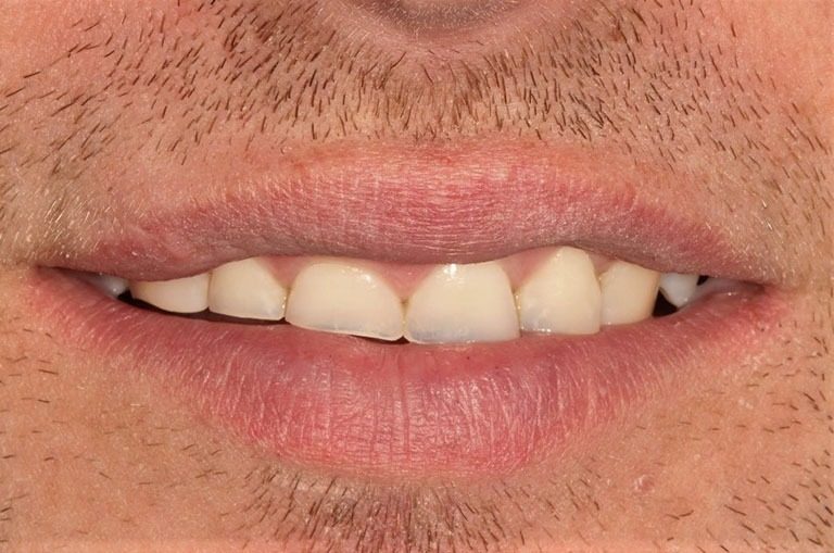 Derek* came to us self-conscious of his smile. Since he had an unconscious habit of teeth grinding his teeth were visibly shorter, plus he was unhappy with shape and position. Through a combination of 6 porcelain veneers & composite build-ups, as well as a KOIS appliance to fix his bite we were able to correct these challenges and transform his smile.