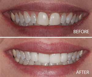 Ashley* noticed her front tooth was becoming more and more discoloured due to previous dental work and was causing her to feel self-conscious when she smiled. We determined 4 veneers were all she needed to smile with confidence again. Every time Ashley visits our office now she gushes about how much she loves her smile makeover and all the compliments she receives on it! A great example of how small changes can make a big difference.